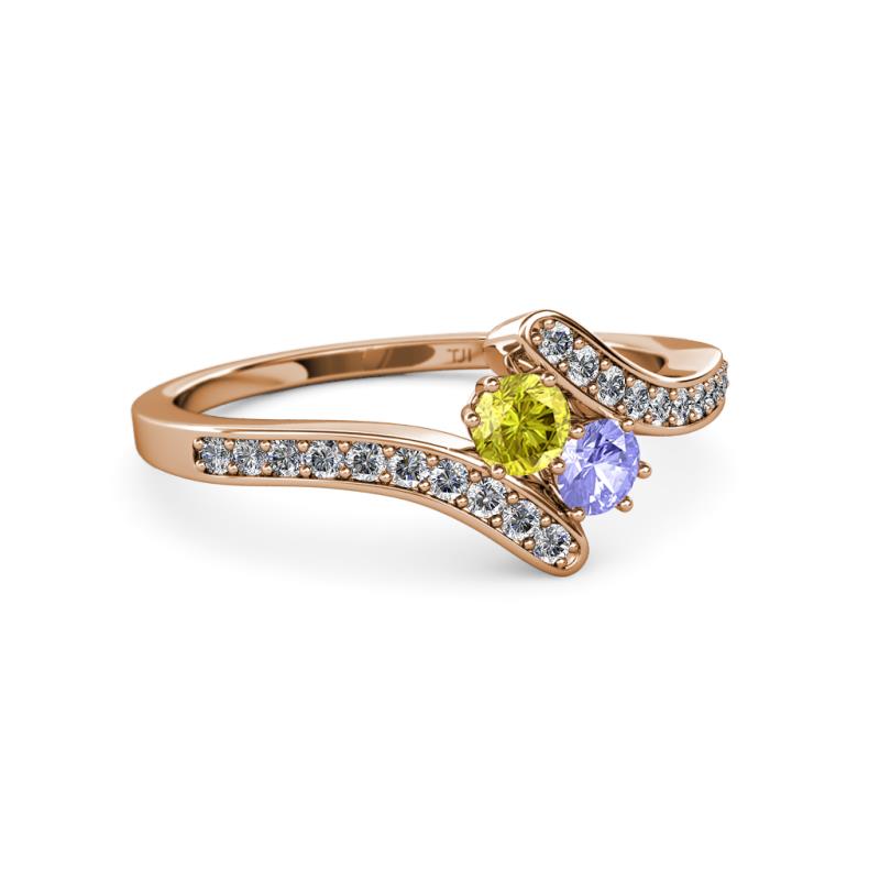 Yellow Diamond and Tanzanite 2 Stone with Side Diamonds Womens Bypass Engagement Ring 0.70 ctw 14K Rose Gold More Details ...