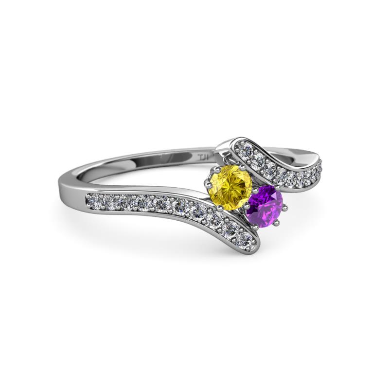 Yellow Sapphire and Amethyst 2 Stone with Side Diamonds Womens Bypass Engagement Ring 0.69 ctw 14K White Gold More Details ...
