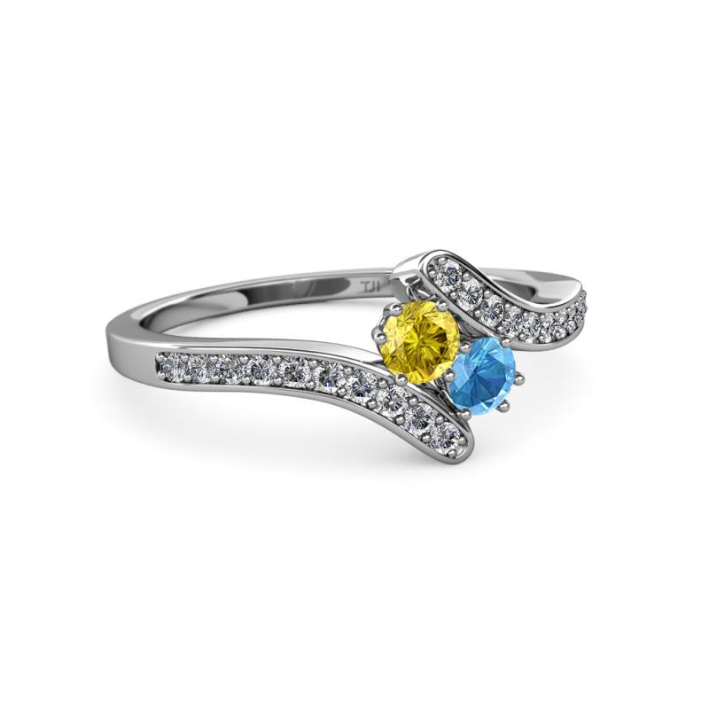 Yellow Sapphire and Blue Topaz 2 Stone with Side Diamonds Womens Bypass Engagement Ring 0.73 ctw 14K White Gold More Details ...