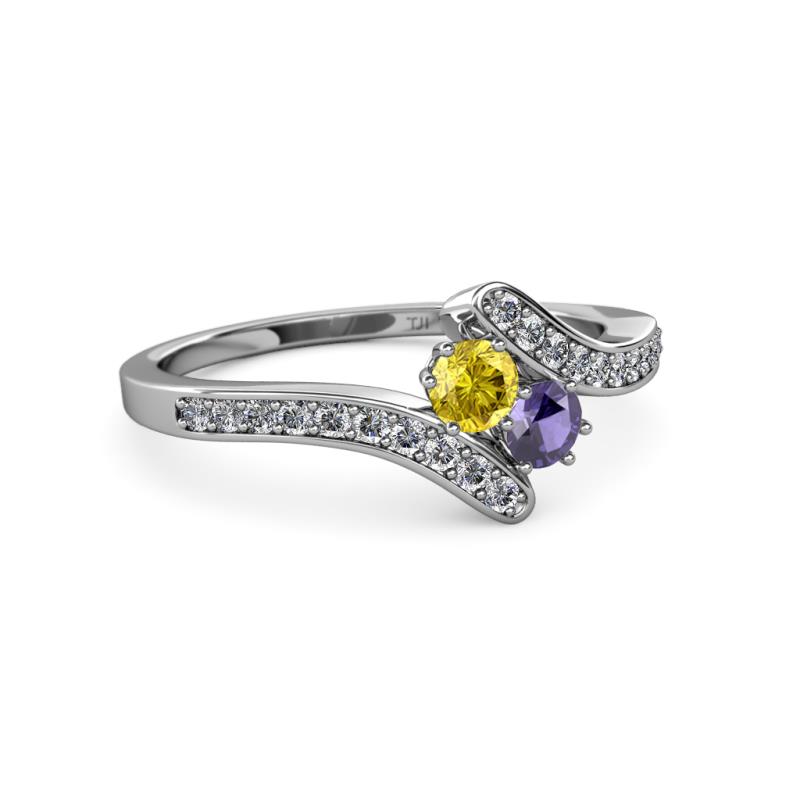 Yellow Sapphire and Iolite 2 Stone with Side Diamonds Womens Bypass Engagement Ring 0.69 ctw 14K White Gold More Details ...