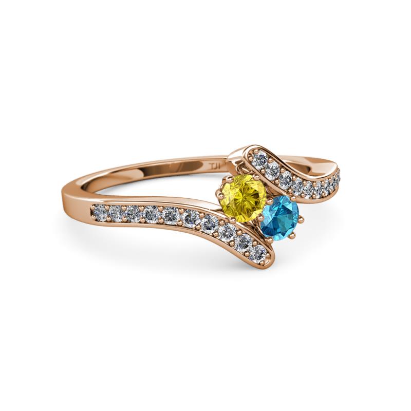 Yellow Sapphire and London Blue Topaz 2 Stone with Side Diamonds Womens Bypass Engagement Ring 0.73 ctw 14K Rose Gold More Details ...