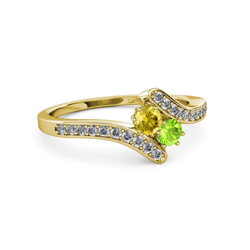 Yellow Sapphire and Peridot 2 Stone with Side Diamonds Womens Bypass Engagement Ring 0.74 ctw 14K Yellow Gold More Details ...