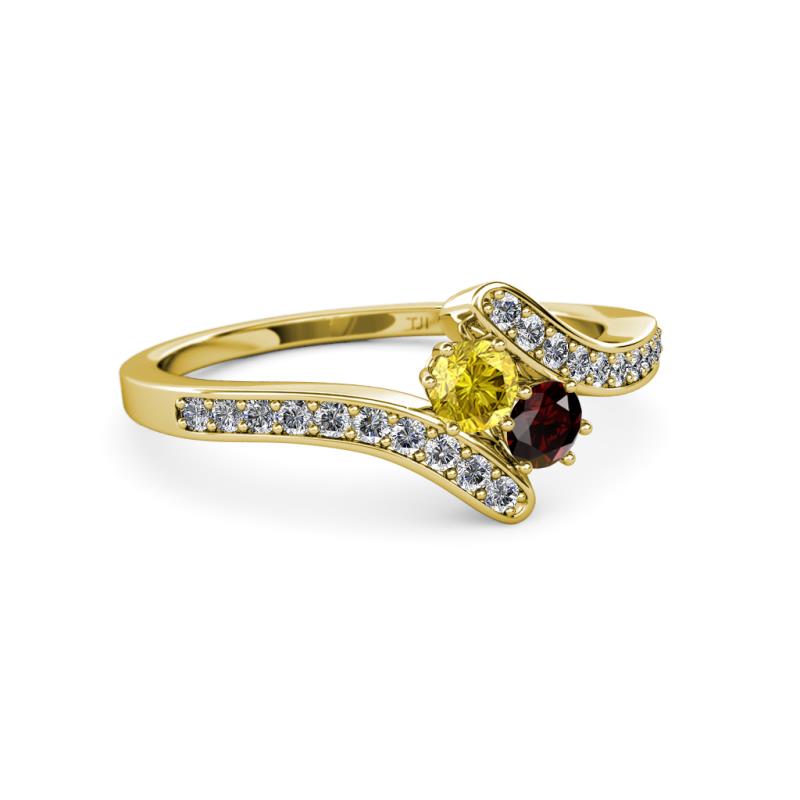Yellow Sapphire and Red Garnet 2 Stone with Side Diamonds Womens Bypass Engagement Ring 0.74 ctw 14K Yellow Gold More Details ...