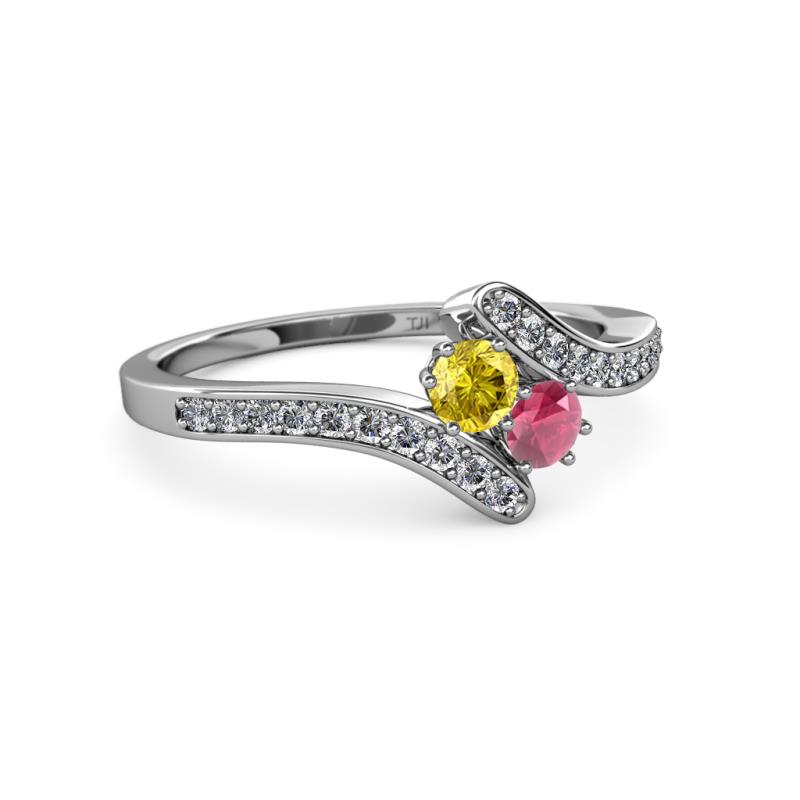 Yellow Sapphire and Rhodolite Garnet 2 Stone with Side Diamonds Womens Bypass Engagement Ring 0.74 ctw 14K White Gold More Details ...