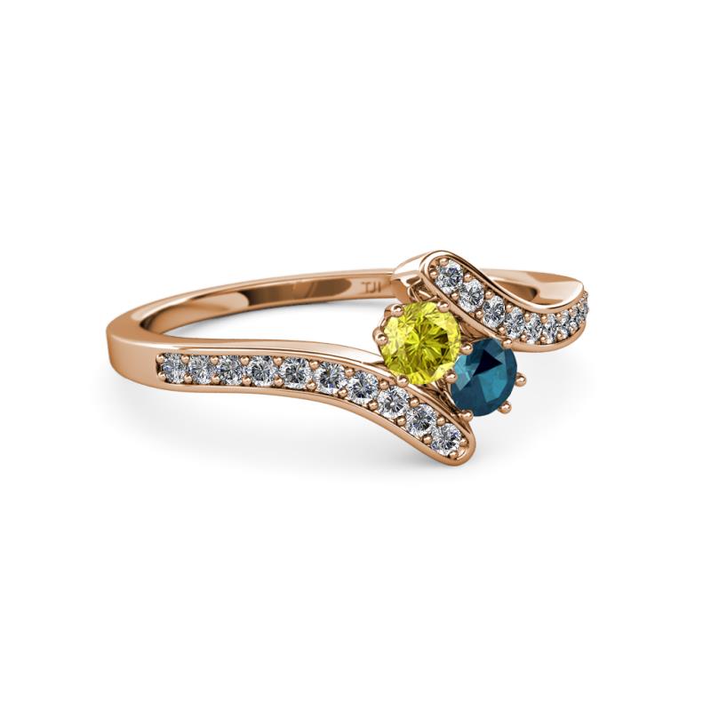 Yellow and Blue Diamond 2 Stone with Side Diamonds Womens Bypass Engagement Ring 0.70 ctw 14K Rose Gold More Details ...