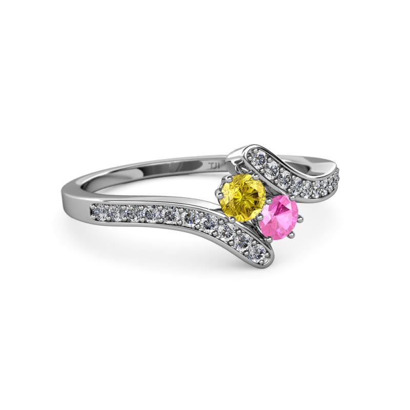 Designed with a meaningful expression of love, this Ring have mesmerizing combination of Yellow Sapphire & Pink Sapphire which represents you & your loved one embraced by fascinating Diamond bypass shank symbolizing that your life revolves around each other.