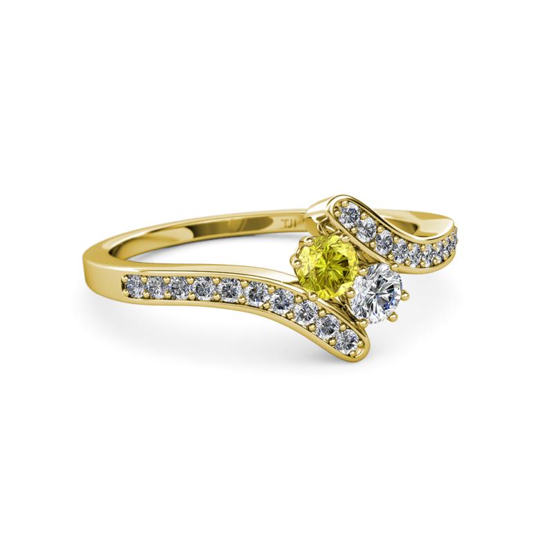 Yellow and White Diamond 2 Stone with Side Diamonds Womens Bypass Engagement Ring 0.70 ctw 14K Yellow Gold More Details ...