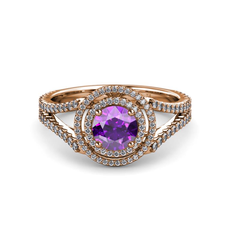 Amethyst and Diamond Double Womens Halo Engagement Ring 1.37 ctw 14K Rose Gold More Details ...