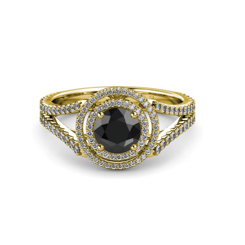 Black and White Diamond Double Womens Halo Engagement Ring 1.37 ctw 14K Yellow Gold More Details ...