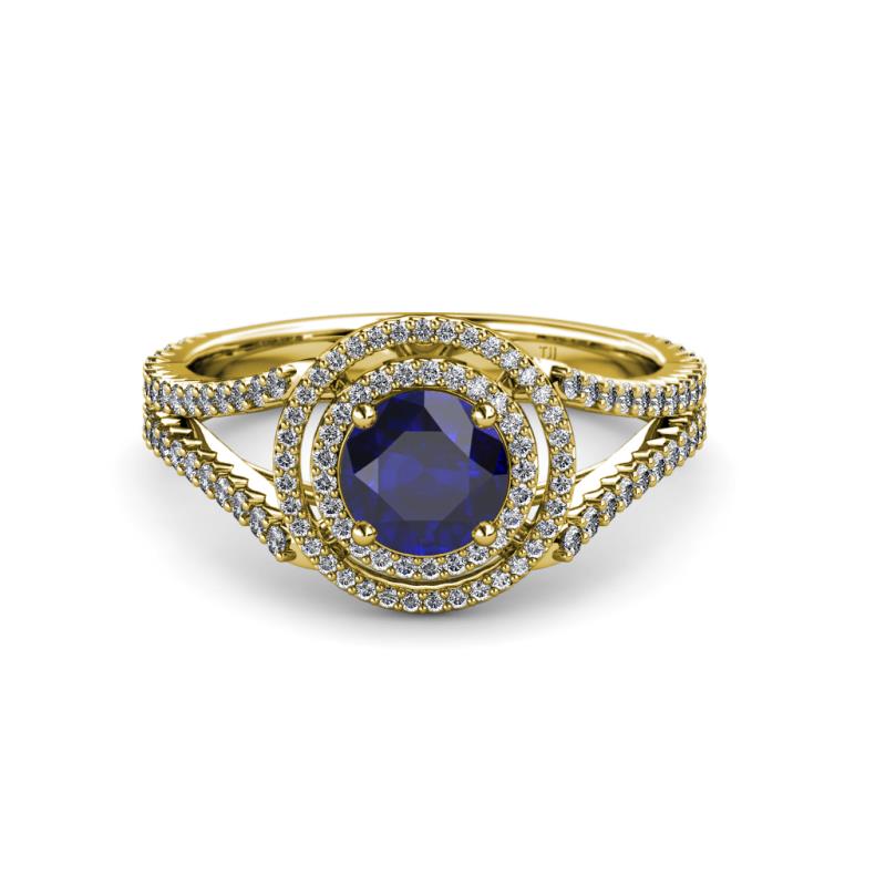 Blue Sapphire and Diamond Double Womens Halo Engagement Ring 1.32 ctw 14K Yellow Gold More Details ...