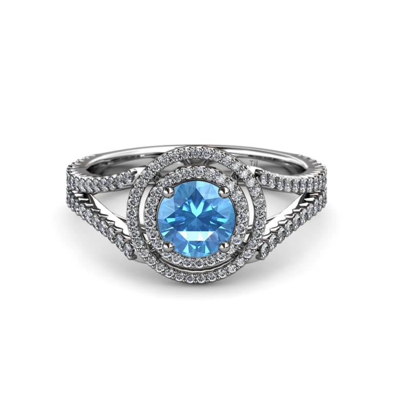 Blue Topaz and Diamond Double Womens Halo Engagement Ring 1.42 ctw Platinum More Details ...