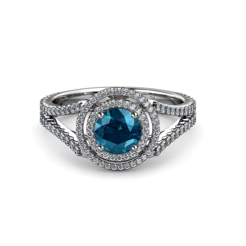 Blue and White Diamond Double Womens Halo Engagement Ring 1.37 ctw Platinum More Details ...