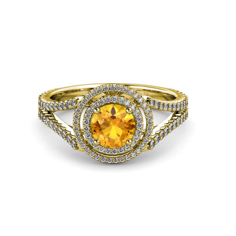 Citrine and Diamond Double Womens Halo Engagement Ring 1.37 ctw 14K Yellow Gold More Details ...