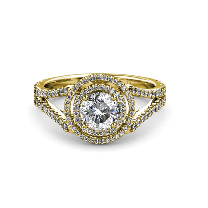 Diamond Womens Double Halo Engagement Ring 1.37 ctw 18K Yellow Gold More Details ...