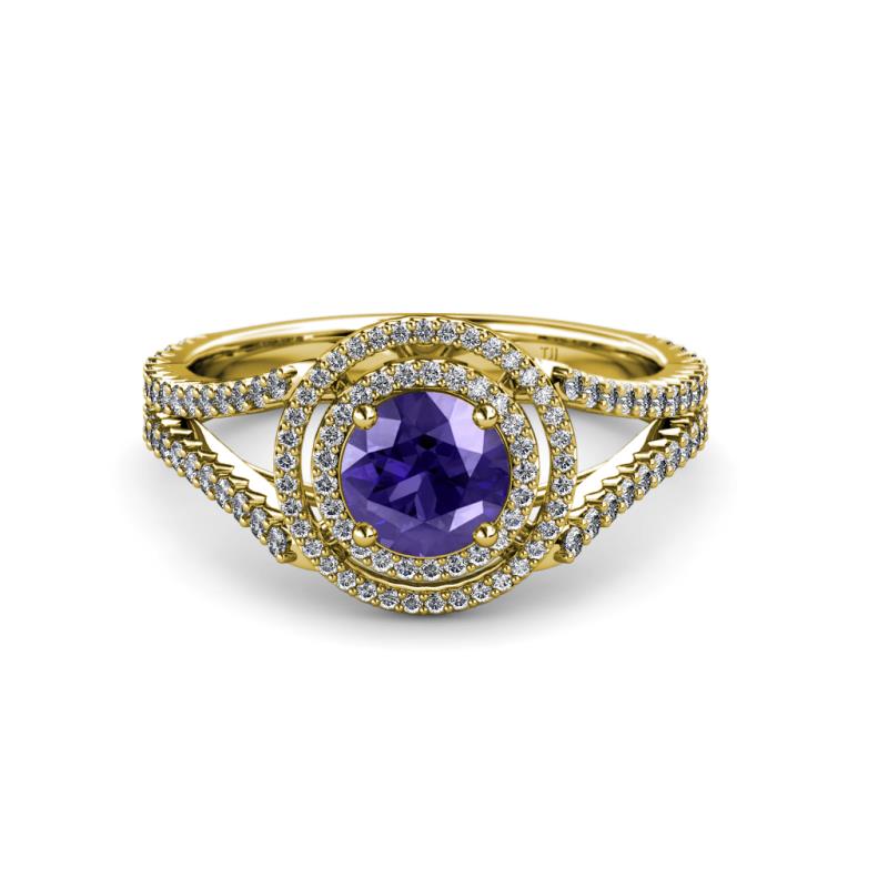 Iolite and Diamond Double Womens Halo Engagement Ring 1.37 ctw 18K Yellow Gold More Details ...