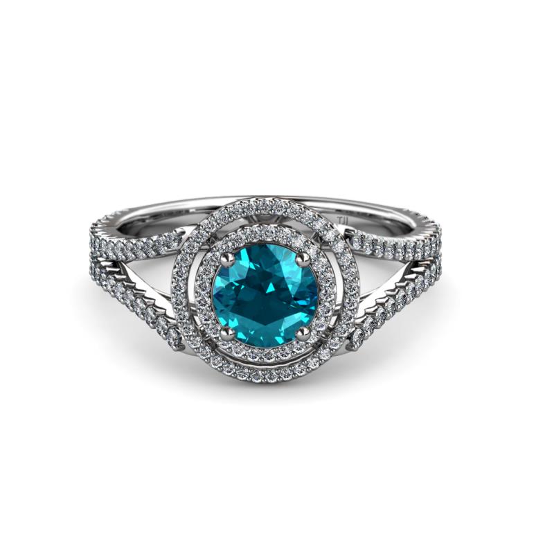 London Blue Topaz and Diamond Double Womens Halo Engagement Ring 1.42 ctw Platinum More Details ...