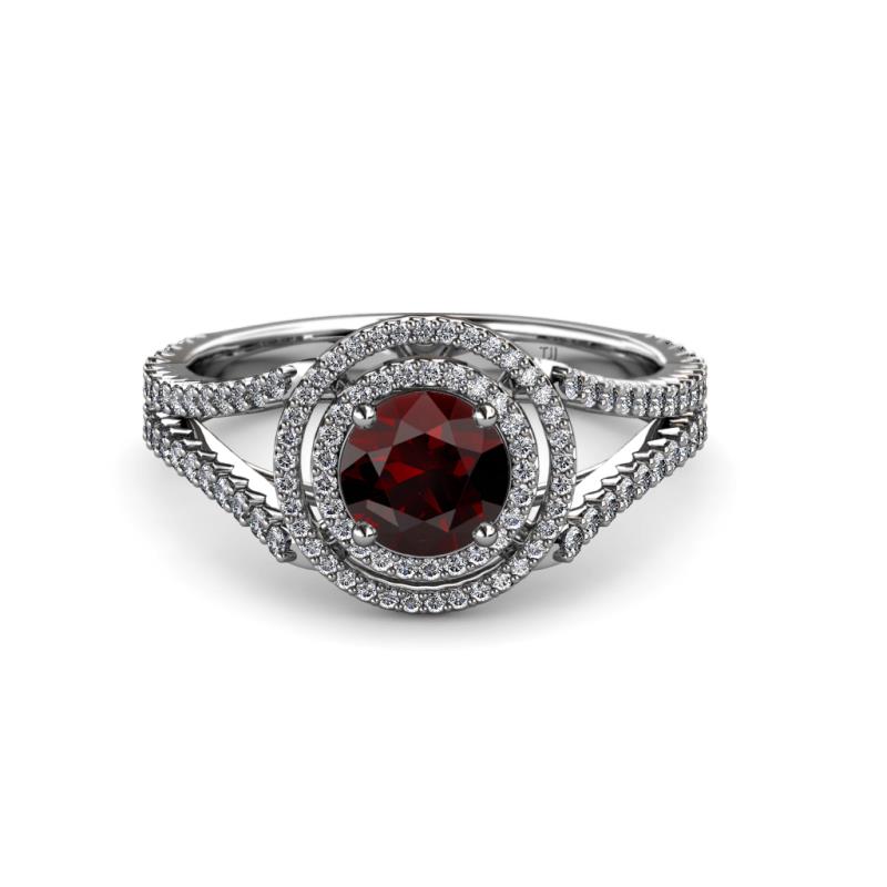 Red Garnet and Diamond Double Womens Halo Engagement Ring 1.42 ctw Platinum More Details ...