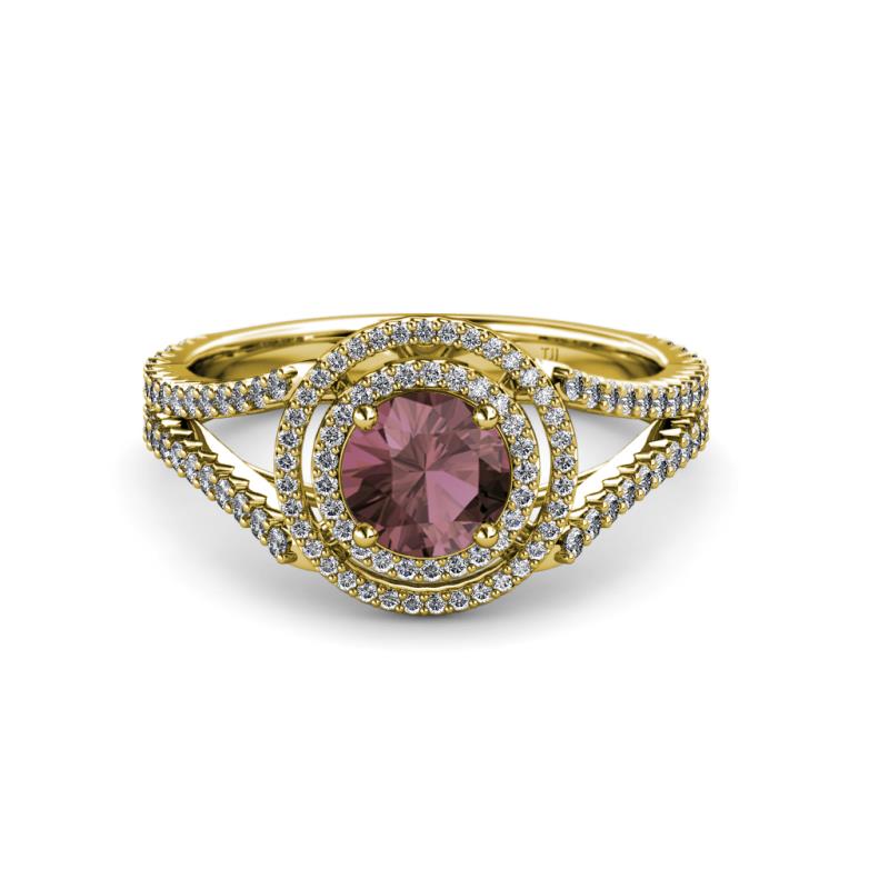Rhodolite Garnet and Diamond Double Womens Halo Engagement Ring 1.37 ctw 18K Yellow Gold More Details ...