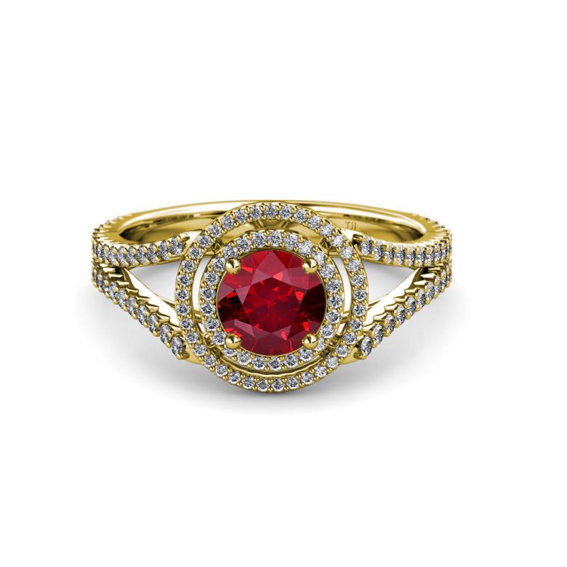 Ruby and Diamond Double Womens Halo Engagement Ring 1.32 ctw 18K Yellow Gold More Details ...