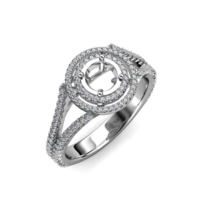 Diamond Four Prong Semi Mount Womens Halo Engagement Ring Setting 0.37 ctw 14K White Gold More Details ...