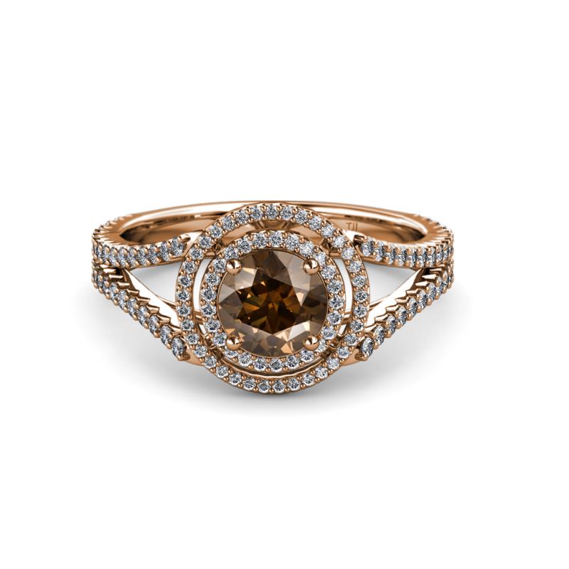 Smoky Quartz and Diamond Double Womens Halo Engagement Ring 1.37 ctw 18K Rose Gold More Details ...