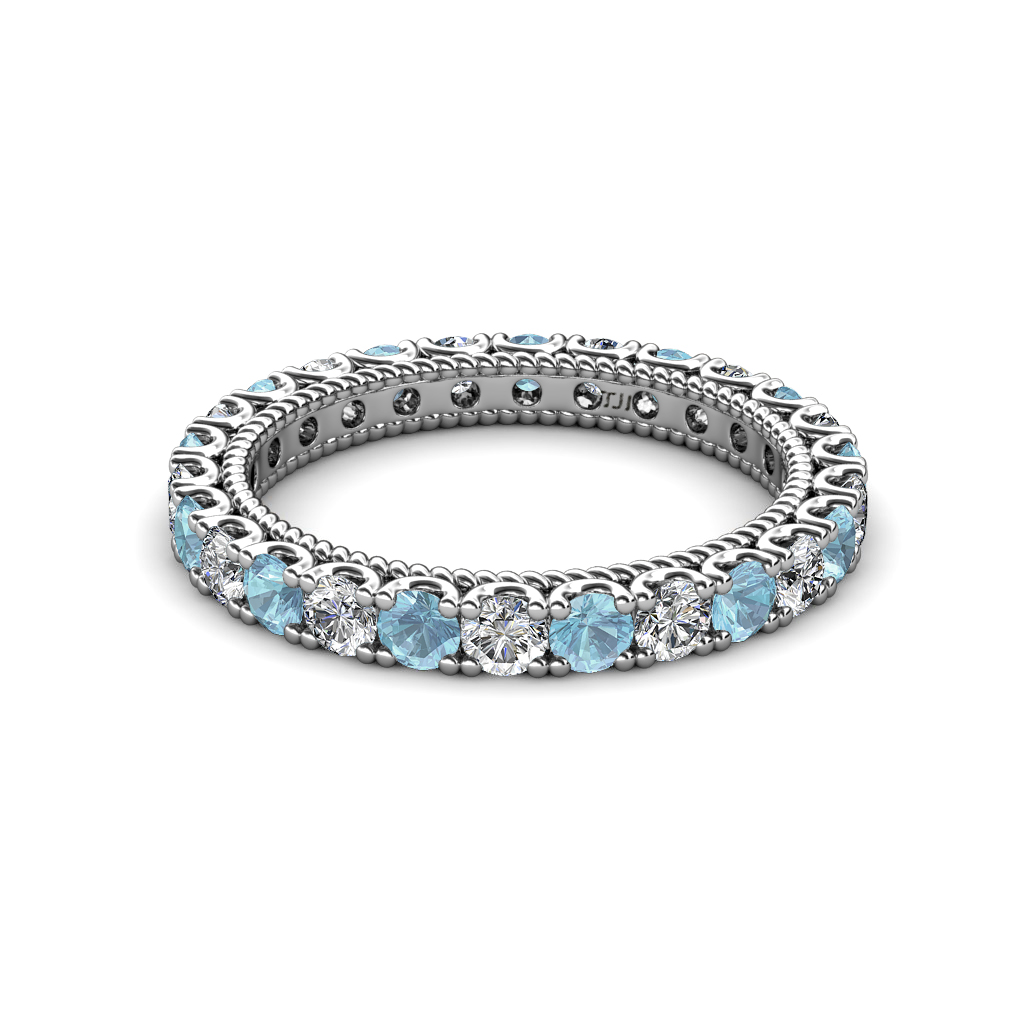 This stunning Eternity Band is Ornamented with striking U-Prong set Aquamarine and Lab Grown Diamond with rope like milgrain embellished all the way around the shank.