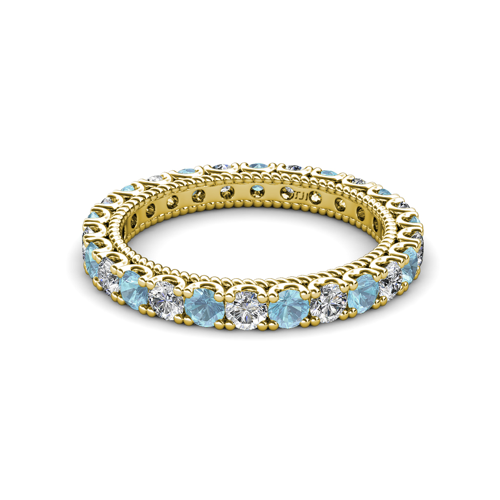 1.62 ctw* Aquamarine and Lab Grown Diamond U-Prong Womens Stackable Eternity Ring in 10K Yellow Gold More Details ...