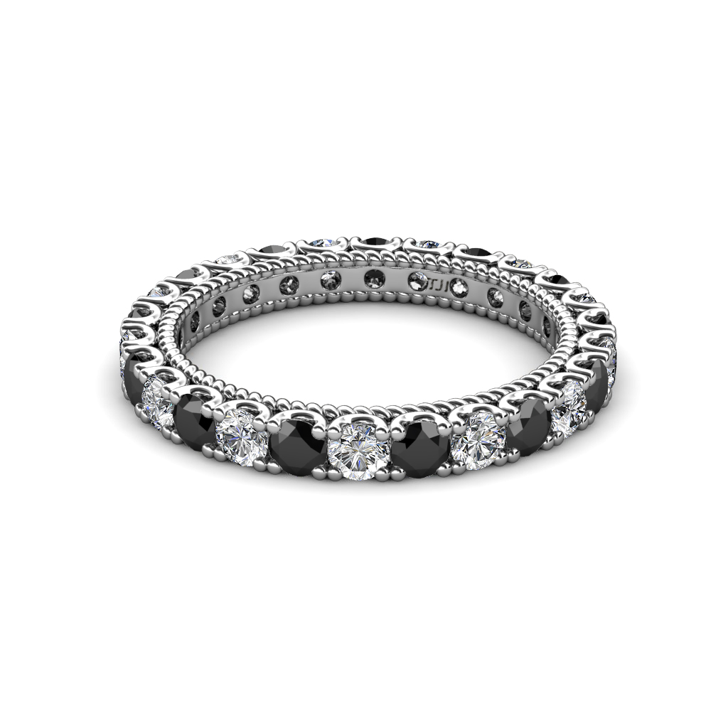 This stunning Eternity Band is Ornamented with striking U-Prong set Black and White Lab Grown Diamond with rope like milgrain embellished all the way around the shank.