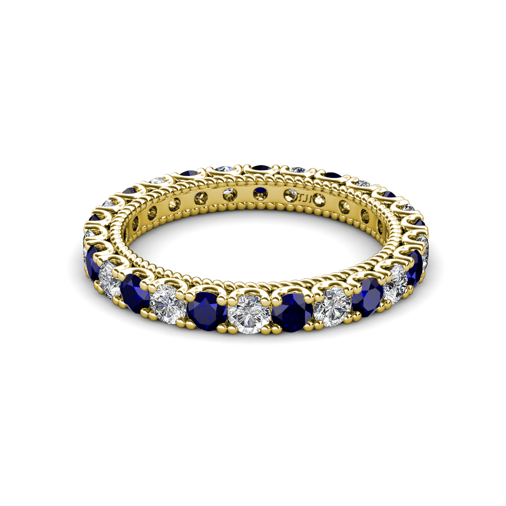 1.80 ctw Blue Sapphire and Natural Diamond U-Prong with Milgrain Eternity Band in 10K Yellow Gold. More Details ...