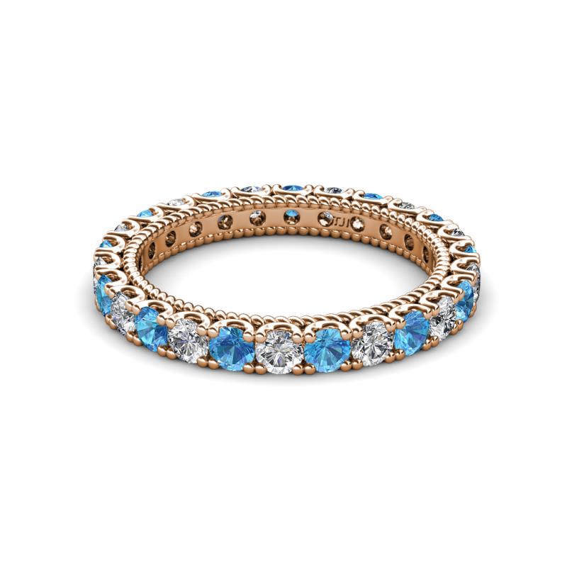 Blue Topaz and Diamond U-Prong Womens Eternity Ring Stackable 1.62 ctw* 14K Rose Gold More Details ...