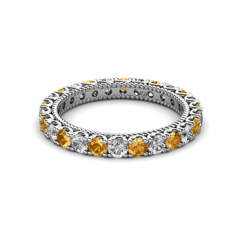 This stunning Eternity Band is Ornamented with striking U-Prong set Citrine and Diamond with rope like milgrain embellished all the way around the shank. *As per ring size the stone and carat total weight changes.