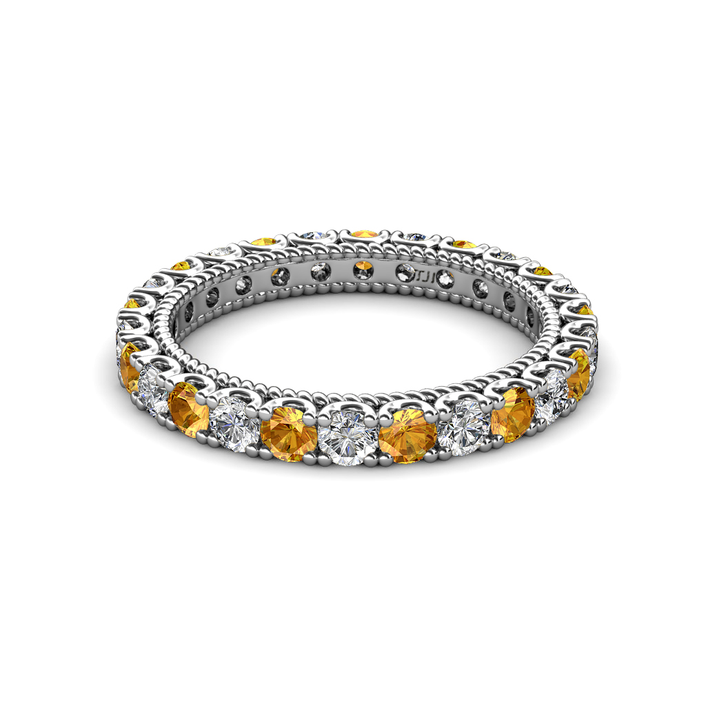 1.86 ctw Citrine and Natural Diamond U-Prong with Milgrain Eternity Band in 10K White Gold. More Details ...