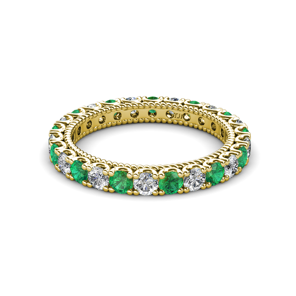 1.56 ctw Emerald and Natural Diamond U-Prong with Milgrain Eternity Band in 10K Yellow Gold. More Details ...