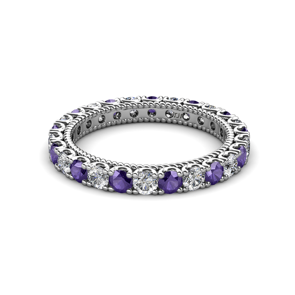 This stunning Eternity Band is Ornamented with striking U-Prong set Iolite and Lab Grown Diamond with rope like milgrain embellished all the way around the shank.