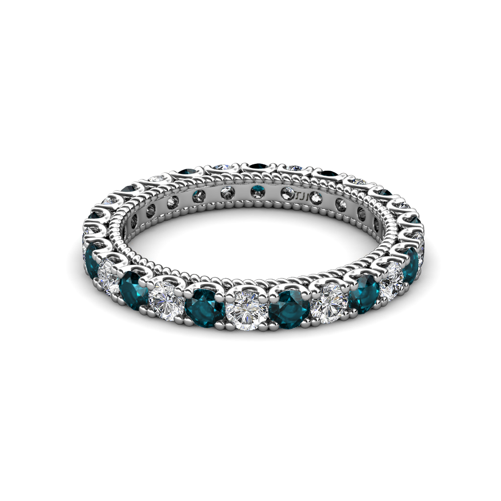This stunning Eternity Band is Ornamented with striking U-Prong set London Blue Topaz and Lab Grown Diamond with rope like milgrain embellished all the way around the shank.