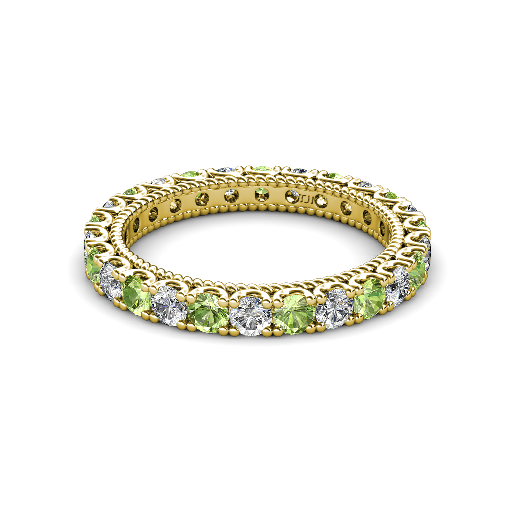 1.91 ctw Peridot and Natural Diamond U-Prong with Milgrain Eternity Band in 10K Yellow Gold. More Details ...