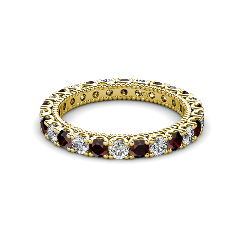 1.91 ctw Red Garnet and Natural Diamond U-Prong with Milgrain Eternity Band in 10K Yellow Gold. More Details ...