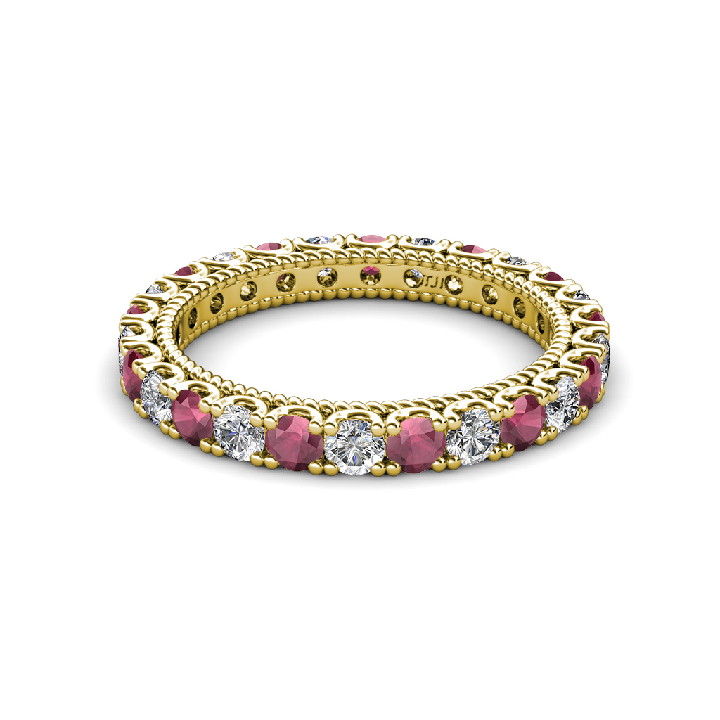 1.97 ctw* Rhodolite Garnet and Lab Grown Diamond U-Prong Womens Stackable Eternity Ring in 10K Yellow Gold More Details ...