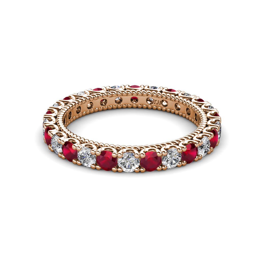 1.80 ctw Ruby and Natural Diamond U-Prong with Milgrain Eternity Band in 10K Rose Gold. More Details ...