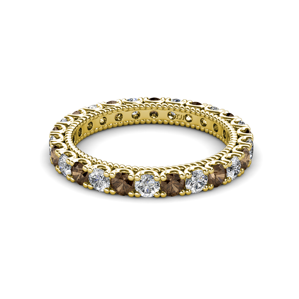 This stunning Eternity Band is Ornamented with striking U-Prong set Smoky Quartz and Diamond with rope like milgrain embellished all the way around the shank.