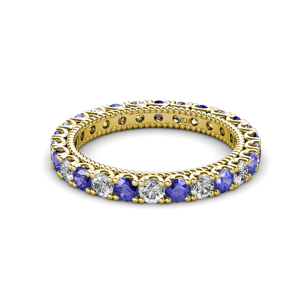 1.80 ctw Tanzanite and Natural Diamond U-Prong with Milgrain Eternity Band in 10K Yellow Gold. More Details ...