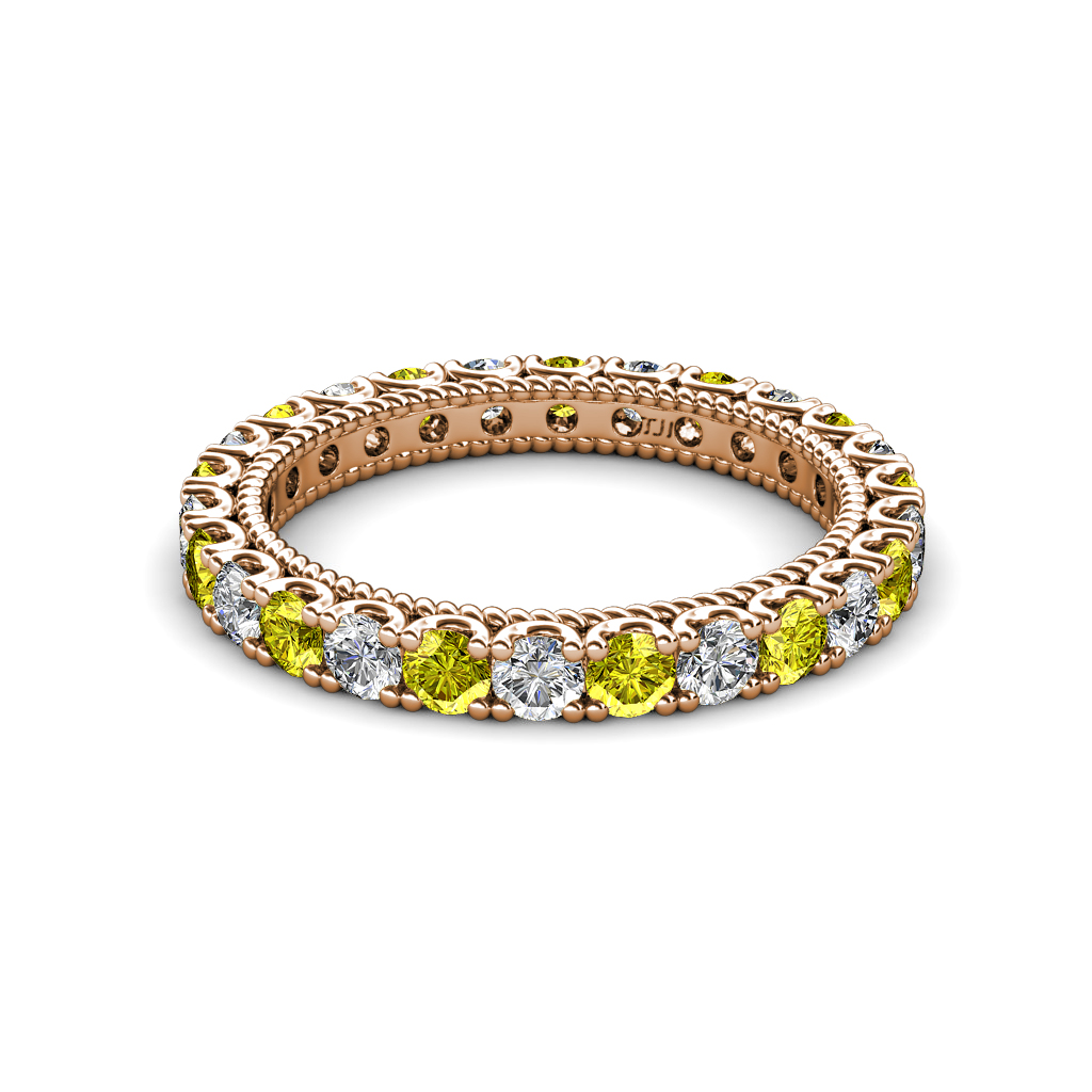 1.74 ctw Yellow Diamond and Natural Diamond U-Prong with Milgrain Eternity Band in 10K Rose Gold. More Details ...
