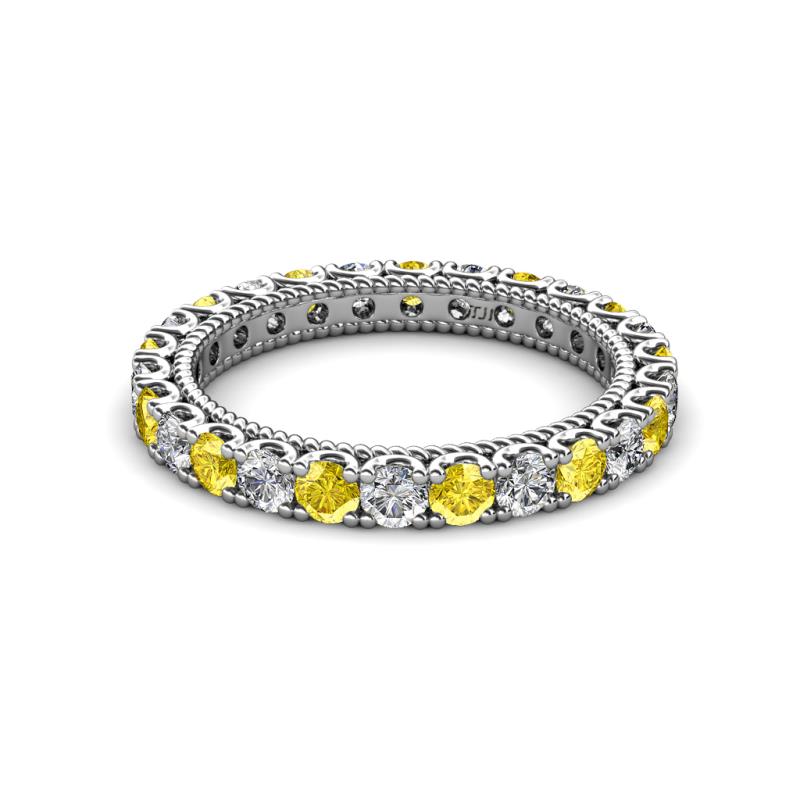 This stunning Eternity Band is Ornamented with striking U-Prong set Yellow Sapphire and Diamond with rope like milgrain embellished all the way around the shank. *As per ring size the stone and carat total weight changes.