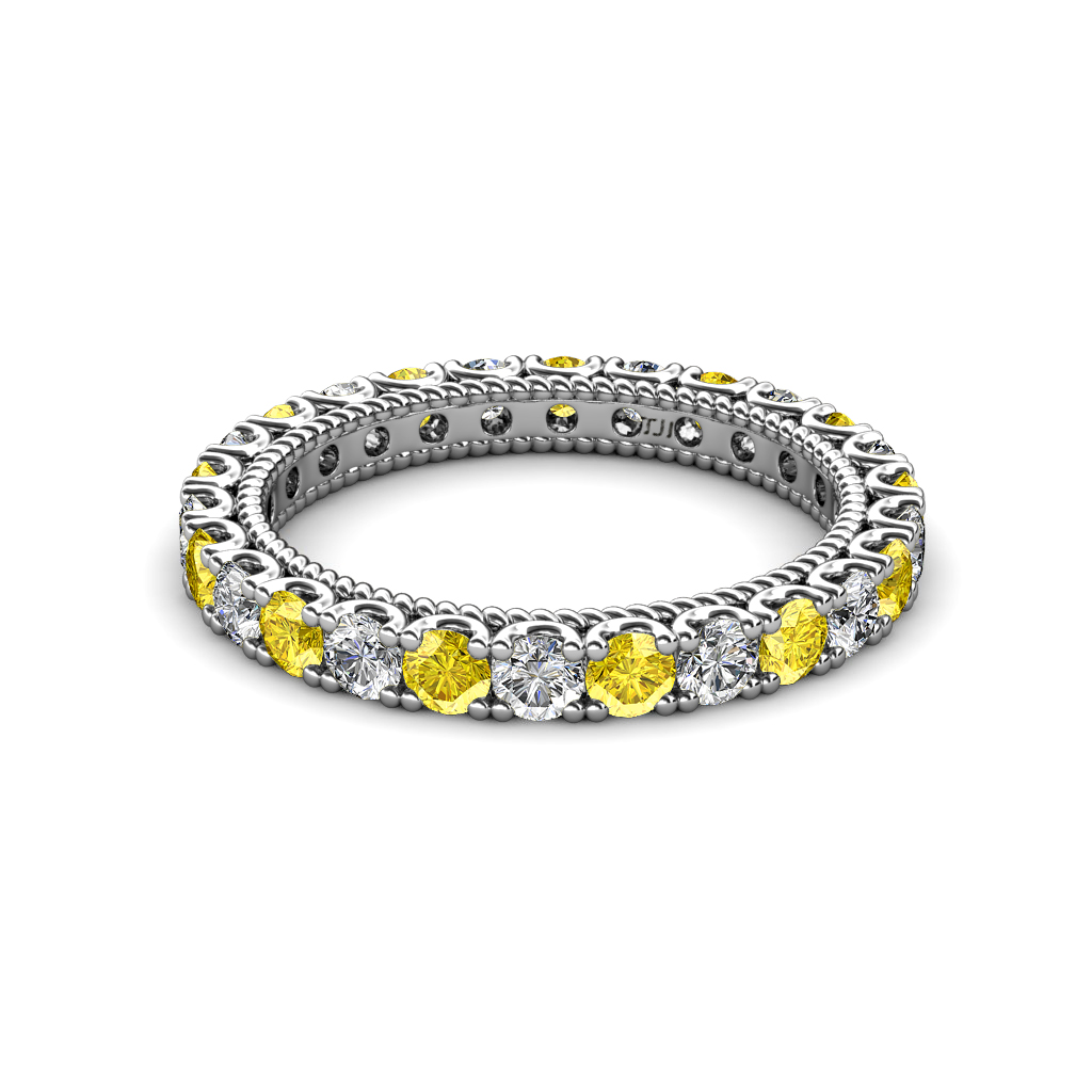 This stunning Eternity Band is Ornamented with striking U-Prong set Yellow Sapphire and Lab Grown Diamond with rope like milgrain embellished all the way around the shank.