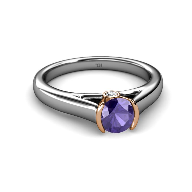 This Two Tone Solitaire Plus Engagement Ring elegantly designed in 18K White Gold features a Semi Bezel set center Iolite in Rose Gold Cathedral Head accompanied by Diamond on either sides making an exceptional way to complement your fashion ensembles.
