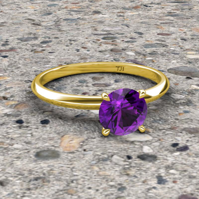 Round Amethyst 0.87 ctw Four Prong Knife Edge Women Solitaire Engagement Ring 18K Yellow Gold More Details ...