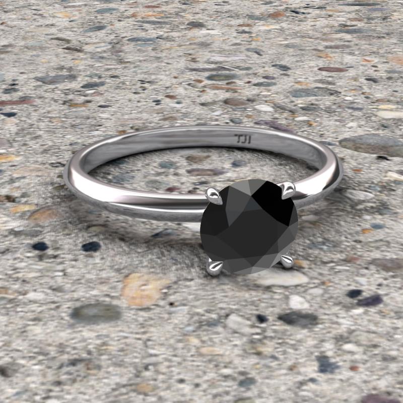 Round Black Diamond 1.50 ctw Four Prong Knife Edge Women Solitaire Engagement Ring 14K White Gold More Details ...