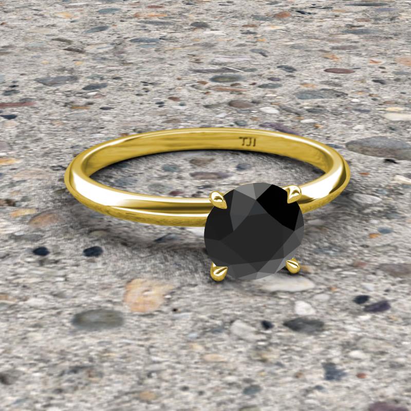 Round Black Diamond 1.50 ctw Four Prong Knife Edge Women Solitaire Engagement Ring 18K Yellow Gold More Details ...