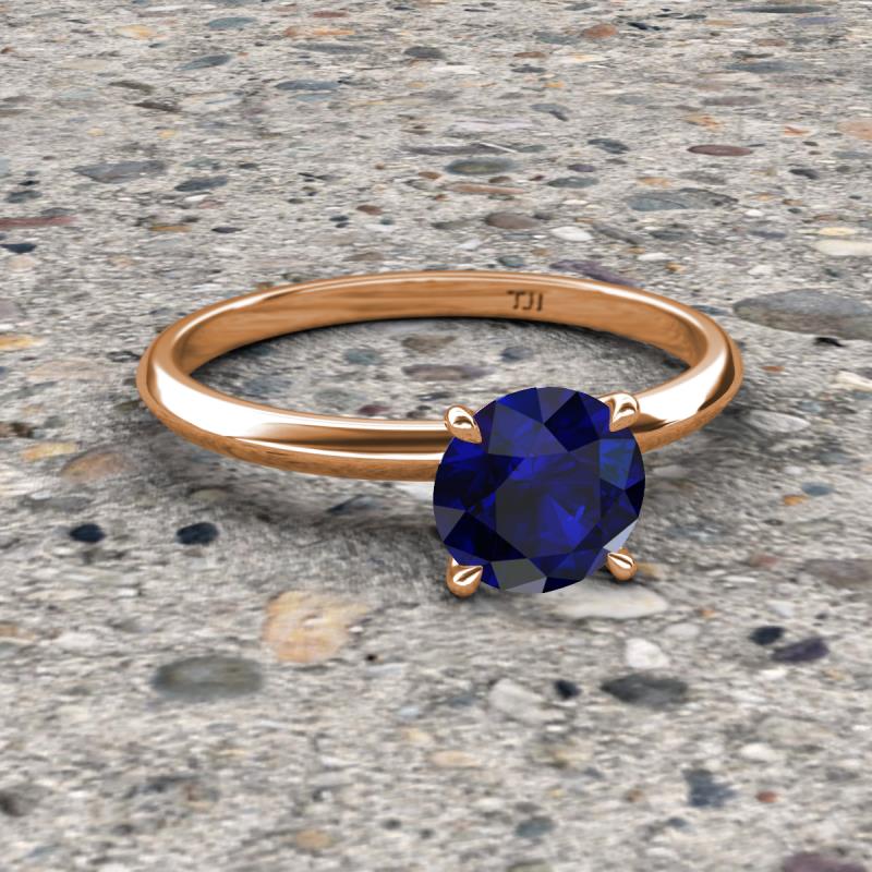 Round Blue Sapphire 1.15 ctw Four Prong Knife Edge Women Solitaire Engagement Ring 14K Rose Gold More Details ...