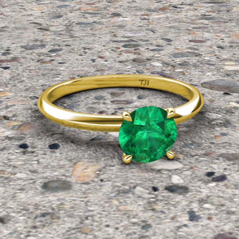 Round Emerald 0.72 ctw Four Prong Knife Edge Women Solitaire Engagement Ring 14K Yellow Gold More Details ...